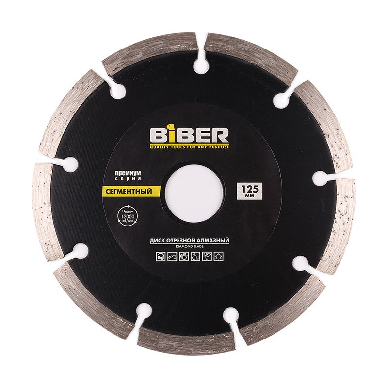 Используется в качестве насадки на УШМ (болгарки), электрические плиткорезы и штроборезы. Предназначен для суой резки бетона, кирпича, керамогранита, гранита, мрамора и другого природного и искусственного камня. Представляет собой насадку из металла, на режущую кромку которой нанесена абразивная масса с алмазной крошкой. Сегментные диски являются несомненным лидером по производительности, так как турбулентные потоки воздуха создаваемые сегментами охлаждают диск в процессе распиловки, давая работать достаточно долго беспрерывно. Дают грубый срез, который нуждается в дополнительной шлифовке при использовании заготовки в отделочных работах. Серия Премиум отличается особенными свойствами режущей кромки (за счет повышенной концентрации алмазов), что увеличивает производительность и долговечность диска.