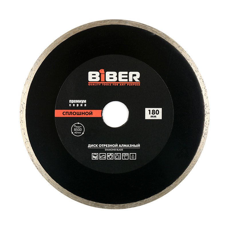 Используется в качестве насадки на УШМ (болгарки), электрические плиткорезы и штроборезы. Предназначен для резки фарфора, керамики, мрамора, камня, для обработки хрупких и тонких материалов, получения гладкого среза в кирпиче, кафеле. Представляет собой насадку из металла, на режущую кромку которой нанесена абразивная масса с алмазной крошкой. Диски серии Премиум отличаются особенными свойствами режущей кромки (за счет повышенной концентрации алмазов), что увеличивает их производительность и долговечность. Обязательно водяное охлаждение во время работы.