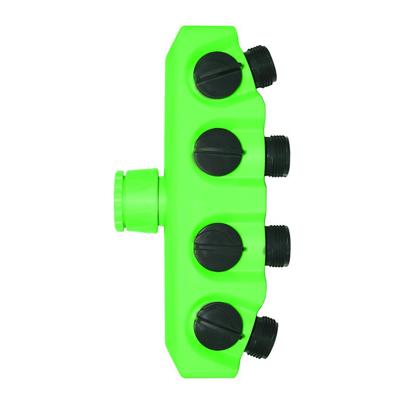 Для распределения подачи воды от одной линии (водопроводный кран, труба, поливочный шланг) на 4 канала.