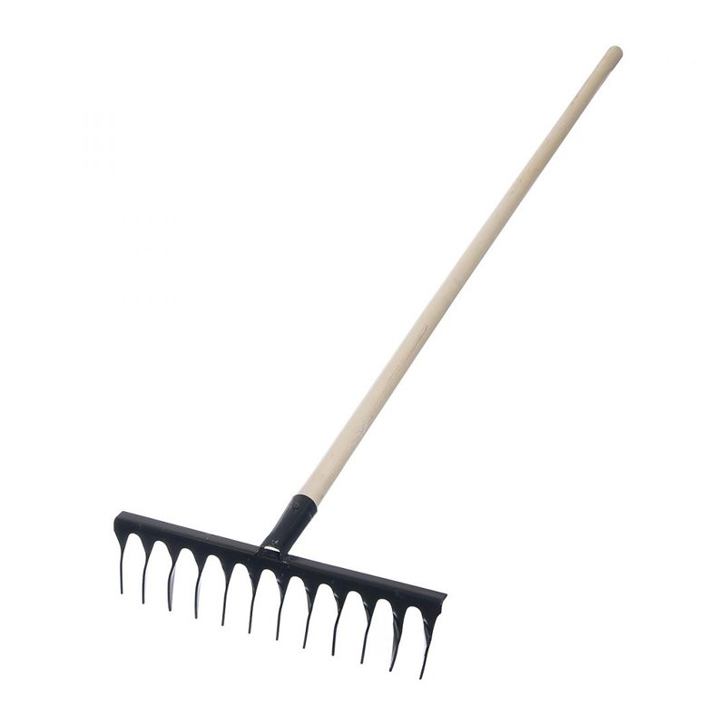 Применяются для сбора листвы, скошенной травы, мусора и разрыхления перекопанной земли.