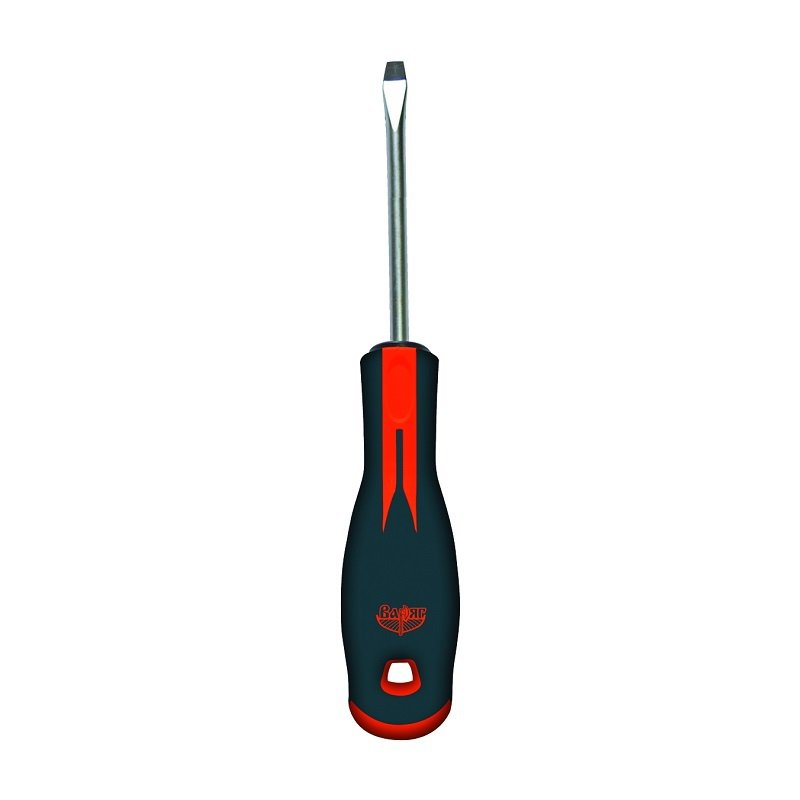 Предназначена для монтажа шлицевого крепежа. Плоский шлиц. Специальная инструментальная сталь SVCM 59HRC. Эргономичная обрезиненная, противоскользящая, маслобензостойкая рукоятка. Магнитный наконечник.
