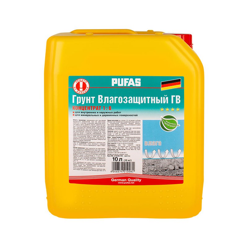 Грунт для внутренних и наружных работ. Предназначен для деревянных и минеральных поверхностей, таких как: известковая, цементная и гипсовая штукатурка, известково-песочный камень, бетон, газобетон, кирпич, цементные плиты. Грунтовка используется для улучшения влагозащитных свойств подложки в ванных комнатах, санузлах, местах общего пользования. Придает после обработки влагостойкость листовым материалам, таким как ГКЛ, ГВЛ, фанера, ДВП и пр. Защищает от плесени и грибка благодаря фунгицидной добавке. Расход: 1л/10-20 м² концентрата как влагозащитный грунт, 1 л/60-70 м² концентрата как акрилатный пропиточный грунт (класса А15) после разбавления. Время высыхания: 60 минут.