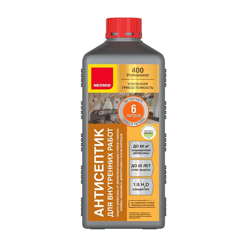 NEOMID 400 – деревозащитное средство нового поколения на водной основе для внутренних работ. Предназначено для защиты древесины на срок до 25 лет от гниения, от действия дереворазрушающих и деревоокрашивающих плесневых грибов, насекомых-древоточцев и короедов.
