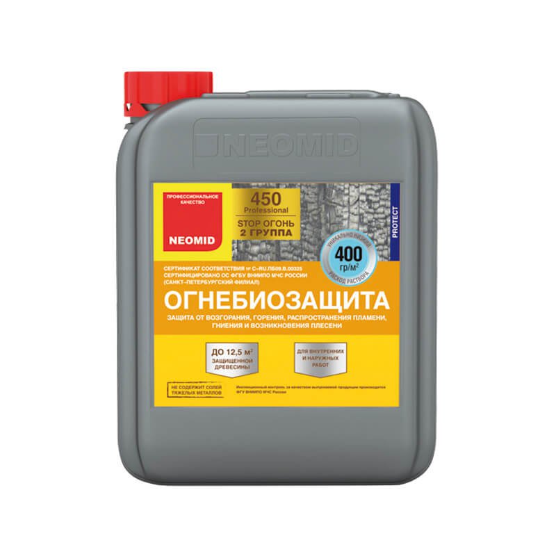 Высокоэффективный состав для огнезащиты и антисептирования древесины. Применяется как защитная и антисептическая пропитка. Переводит древесину в трудновоспламеняемый материал, обеспечивая II (вторую) группу огнезащитной эффективности согласно НПБ 251-98. Подходит для следующих объектов: деревянные стены балок, стропильные системы, несущие брусья, перекрытия, лаги, оконные и дверные блоки, а также другие конструкции из древесины различного назначения. Расход: 400 г/м². Время высыхания: не менее 48 часов при температуре 16-20°С и относительной влажности воздуха 60%.