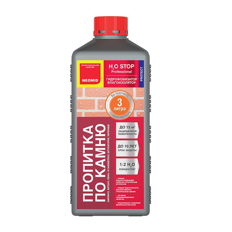 Водоотталкивающая пропитка по камню. Придает водоотталкивающие и самомоющиеся свойства минеральным основаниям, препятствует увлажнению стен, повышая их теплоизоляционные свойства.