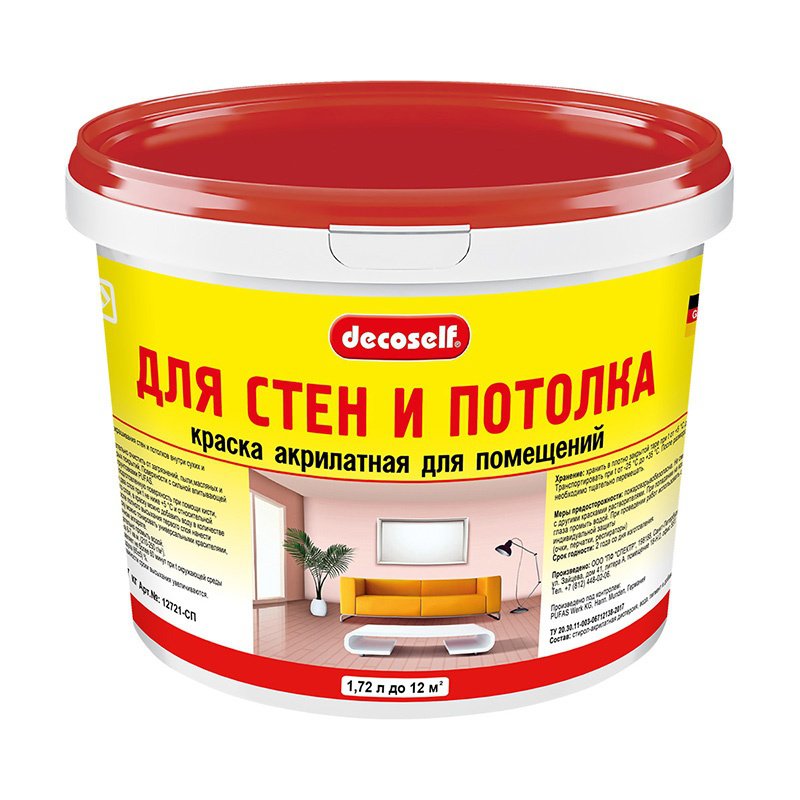 Латексная краска для окраски стен и потолков внутри сухих и влажных отапливаемых помещений.