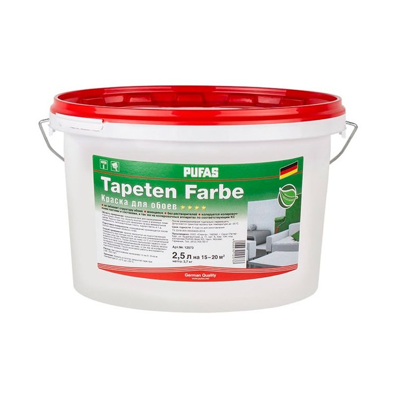 Интерьерная акрилатная (акриловая) латексная краска для окрашивания структурных обоев под окраску внутри сухих и влажных помещений. Применяется для окрашивания внутри сухих и влажных помещений. Краска пригодна для нанесения на все минеральные поверхности, гипсокартонные плиты, кирпич бетон и т.д. Расход: 6-8 м2/л (190-250 г/м2) на однослойное покрытие, 40 м2/10 л - при двухслойном покрытии. Время высыхания до степени "3" составляет не более 60 минут при температуре окружающей среды (25 ±2) °С и относительной влажности воздуха (65 ±5) %. При низких температурах и высокой влажности сроки высыхания увеличиваются.