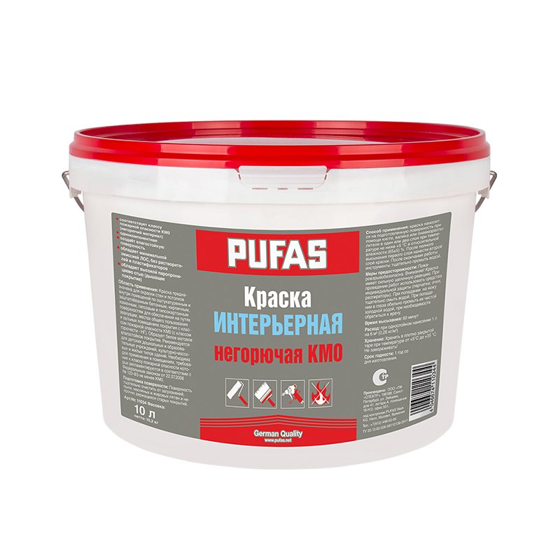 Краска предназначена для окраски стен и потолков внутри помещений по оштукатуренным и зашпатлёванным цементными материалами бетонным, кирпичным, каменным и гипсокартонным поверхностям для обеспечения на путях эвакуации, местах общего пользования и зальных помещениях покрытия с классом пожарной опасности КМ0 (с классом горючести - НГ). Образует белое матовое влагостойкое покрытие. Рекомендуется для детских дошкольных и образовательных учреждений, культурно-массовых и жилых типов зданий. Необходима для применения в помещениях, требования к классу пожарной опасности которых регламентируются в соответствии с Федеральным законом от 22.07.2008 № 123-Ф3 не менее КМ0.