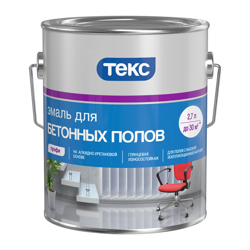 Специальная алкидно-уретановая эмаль. Предназначена для окраски бетонных, деревянных и металлических полов в помещениях с высокой эксплуатационной нагрузкой (гаражи, склады, спортивные залы и другие хозяйственные помещения), а также полов расположенных снаружи помещений под навесом (балконы, террасы, веранды). Расход: 8-11 м²/л в зависимости от способа нанесения и впитывающей способности основания. Время высыхания: "от пыли" – 8-10 часов. Следующий слой можно наносить через сутки. Поверхность готова к эксплуатации через 1 неделю, однако, достигает окончательной твердости через 4 недели.