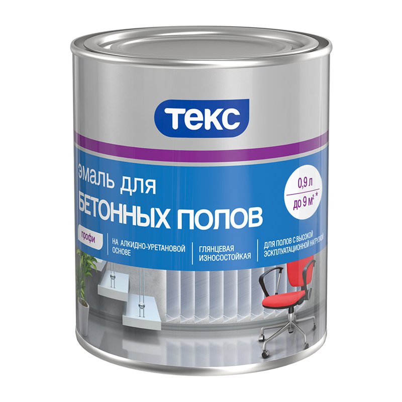 Специальная алкидно-уретановая эмаль. Предназначена для окраски бетонных, деревянных и металлических полов в помещениях с высокой эксплуатационной нагрузкой (гаражи, склады, спортивные залы и другие хозяйственные помещения), а также полов расположенных снаружи помещений под навесом (балконы, террасы, веранды). Расход: 8-11 м²/л в зависимости от способа нанесения и впитывающей способности основания. Время высыхания: "от пыли" – 8-10 часов. Следующий слой можно наносить через сутки. Поверхность готова к эксплуатации через 1 неделю, однако, достигает окончательной твердости через 4 недели.
