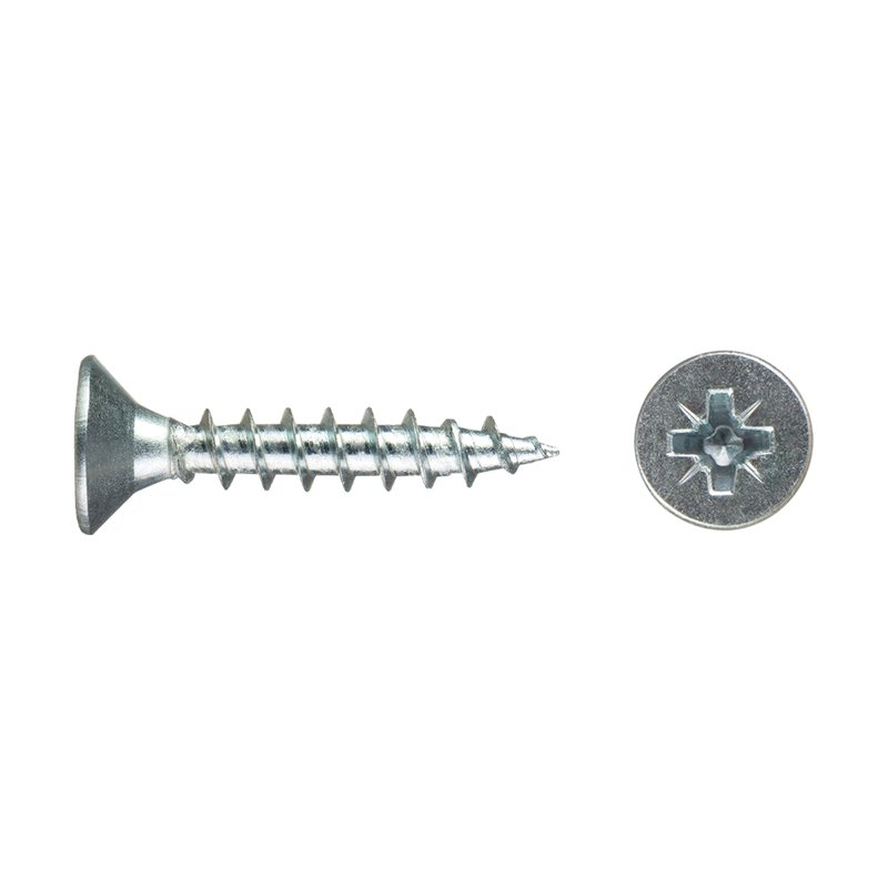 Саморез используется для крепления дерева, ДСП, ДВП и других материалов. Имеет потайную головку, крестообразный шлиц Pozi, острый наконечник, крупную резьбу.