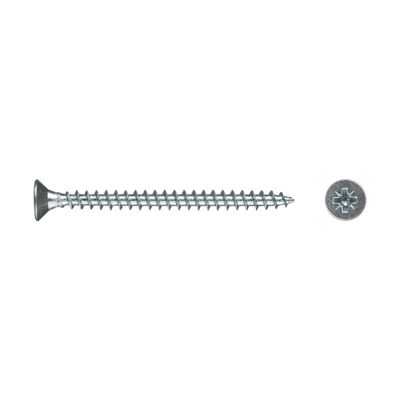 Саморез используется для крепления дерева, ДСП, ДВП и других материалов. Имеет потайную головку, крестообразный шлиц Pozi, острый наконечник, крупную резьбу.