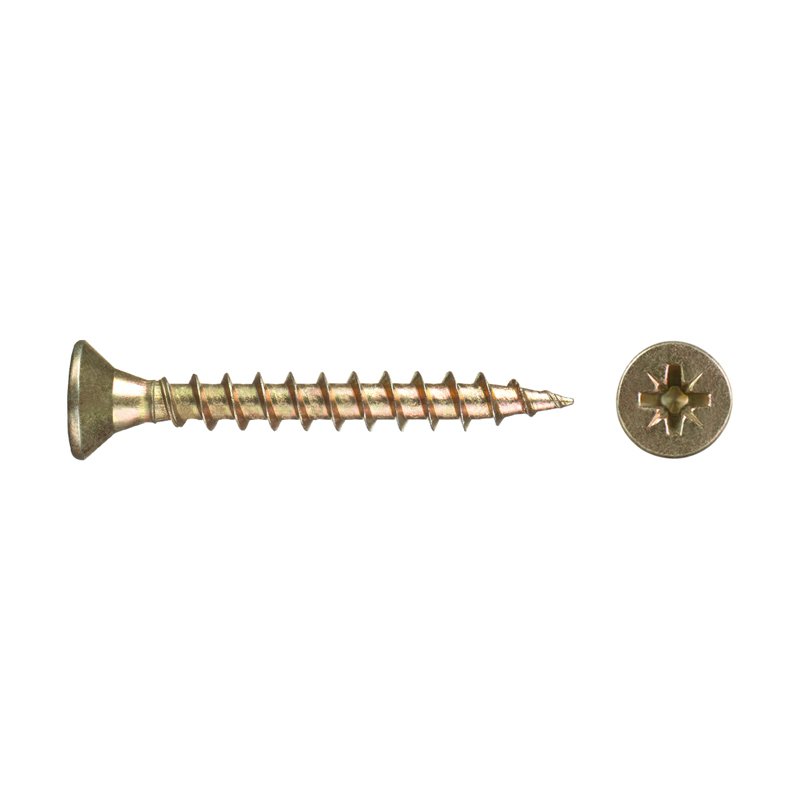 Саморез используется для крепления дерева, ДСП, ДВП и других материалов. Имеет потайную головку, крестообразный шлиц Pozi, острый наконечник, крупную резьбу.