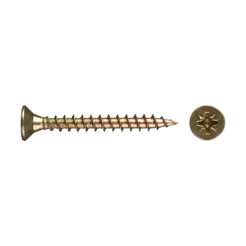 Саморез используется для крепления дерева, ДСП, ДВП и других материалов. Имеет потайную головку, крестообразный шлиц Pozi, острый наконечник, крупную резьбу.