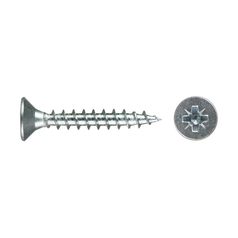 Саморез используется для крепления дерева, ДСП, ДВП и других материалов. Имеет потайную головку, крестообразный шлиц Pozi, острый наконечник, крупную резьбу.