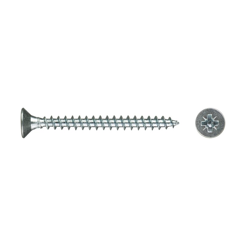 Саморез используется для крепления дерева, ДСП, ДВП и других материалов. Имеет потайную головку, крестообразный шлиц Pozi, острый наконечник, крупную резьбу.