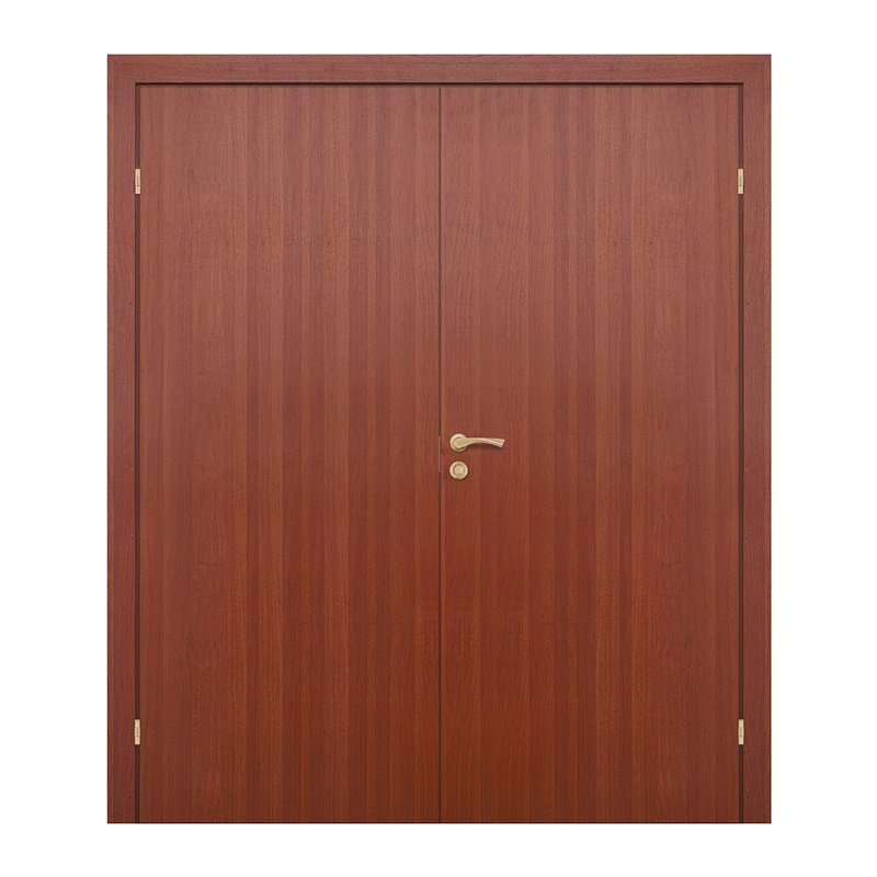 Полотно дверное, ответная часть, без притвора, глухое, ламинированное. Каркас сделан из массива сосны и(или) МДФ. Сотовое картонное заполнение. Поверхность - плита ХДФ. Установлены ответная планка замка типа 0028, два врезных шпингалета, отфрезерованы посадочные места для крепления петель. Предназначено для комплектации двупольного дверного блока.