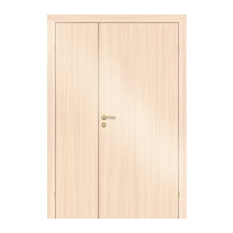 Полотно дверное, ответная часть, без притвора, глухое, ламинированное. Каркас сделан из массива сосны и(или) МДФ. Сотовое картонное заполнение. Поверхность - плита ХДФ. Установлены ответная планка замка типа 0028, два врезных шпингалета, отфрезерованы посадочные места для крепления петель. Предназначено для комплектации двупольного дверного блока.