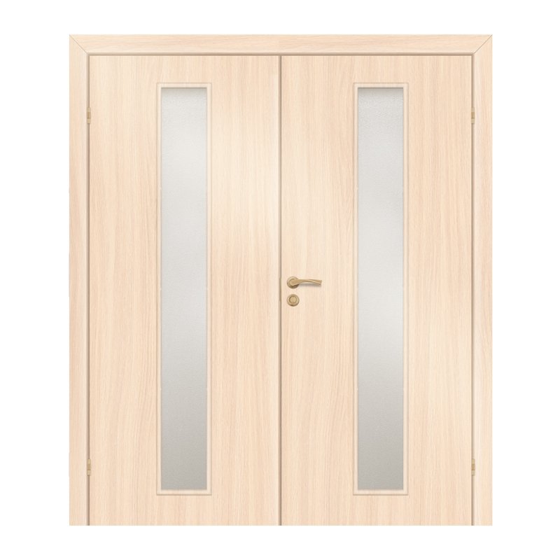 Полотно дверное, ответная часть, остекленное, без притвора, ламинированное. Каркас сделан из массива сосны и(или) МДФ. Сотовое картонное заполнение. Поверхность - плита ХДФ. Установлены ответная планка замка типа 0028, два врезных шпингалета, отфрезерованы посадочные места для крепления петель. Предназначена для комплектации двупольного дверного блока.
