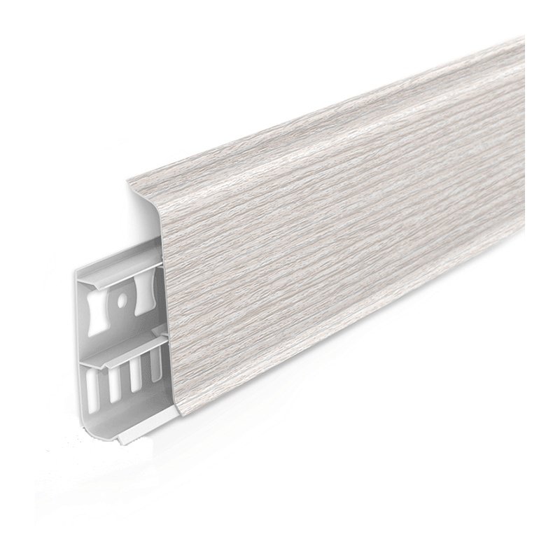 Предназначен для отделки, укладывается по периметру помещения между напольным покрытием и стеной. Плинтус состоит из двух частей, одна из которых крепится к стене, а вторая, декорированная, прикрепляется сверху с помощью специальных защелок. Между двумя частями образуются кабель-каналы, в которые можно проложить силовой, компьютерный, телевизионный и др. кабели. Мягкий обрезиненный край плинтуса предотвращает попадание влаги и пыли между стеной и полом.