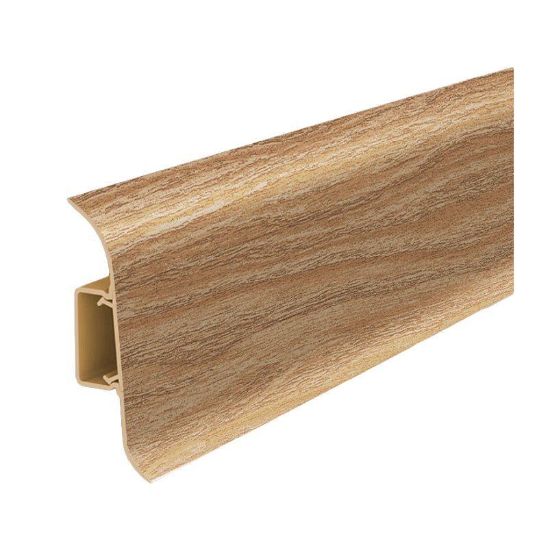 Предназначен для отделки, укладывается по периметру помещения между напольным покрытием и стеной. Плинтус имеет кабель-канал, в котором можно проложить силовой, компьютерный, телевизионный и др. кабели. Мягкий обрезиненный край плинтуса предотвращает попадание влаги и пыли между стеной и полом.