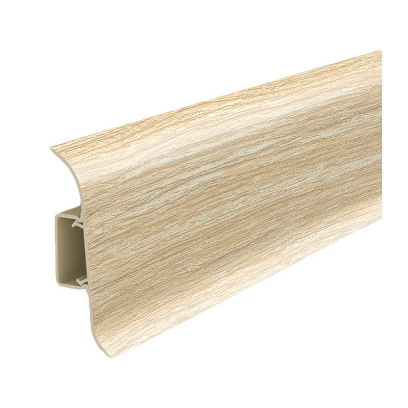 Предназначен для отделки, укладывается по периметру помещения между напольным покрытием и стеной. Плинтус имеет кабель-канал, в котором можно проложить силовой, компьютерный, телевизионный и др. кабели. Мягкий обрезиненный край плинтуса предотвращает попадание влаги и пыли между стеной и полом.
