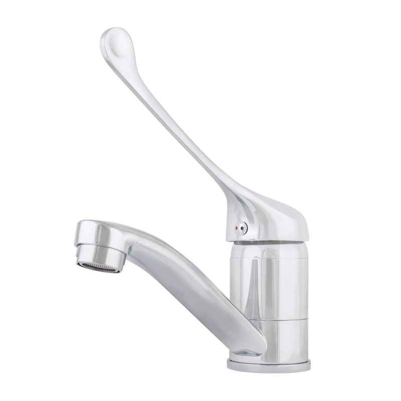 Предназначен для использования в хозяйственных помещениях (гараж, мастерская, подвал и пр.) или медицинских учреждениях. Благодаря удлиненной ручки можно включить воду без помощи рук. Корпус смесителя выполнен из цинкового сплава, стойкого к коррозии, давлению и перепаду температур. Излив оснащен качественным аэратором с пластиковым сердечником. Крепление к столешнице или мойке осуществляется с помощью шпильки, фигурной скобы и прокладок.