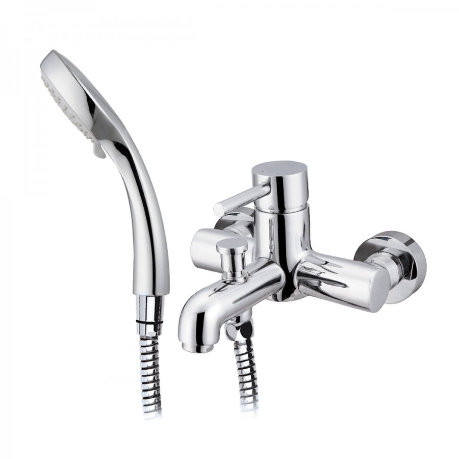 Смеситель, шланг для душа ПВХ 1,5 м, душевая лейка 5 режимов (d=95 мм), пластиковый держатель для лейки с комплектом крепежа, эксцентрики, декоративные накладки, паспорт изделия.