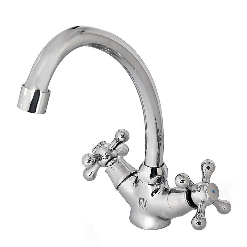 Выполнен из высококачественной латуни. Многослойное никель-хромовое покрытие. Поворотный латунный литой излив. В комплектацию входит: смеситель, гибкая подводка, комплект крепежа, паспорт изделия.