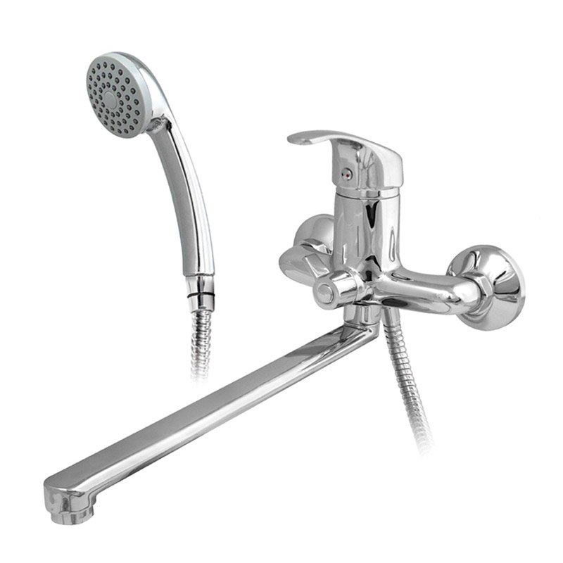 Комплектация: смеситель, металлизированный шланг для душа 1,5 м, душевая лейка (d=70 мм) 1 режим, пластиковый держатель для лейки, комплект крепежа, эксцентрики, декоративные накладки, паспорт изделия.