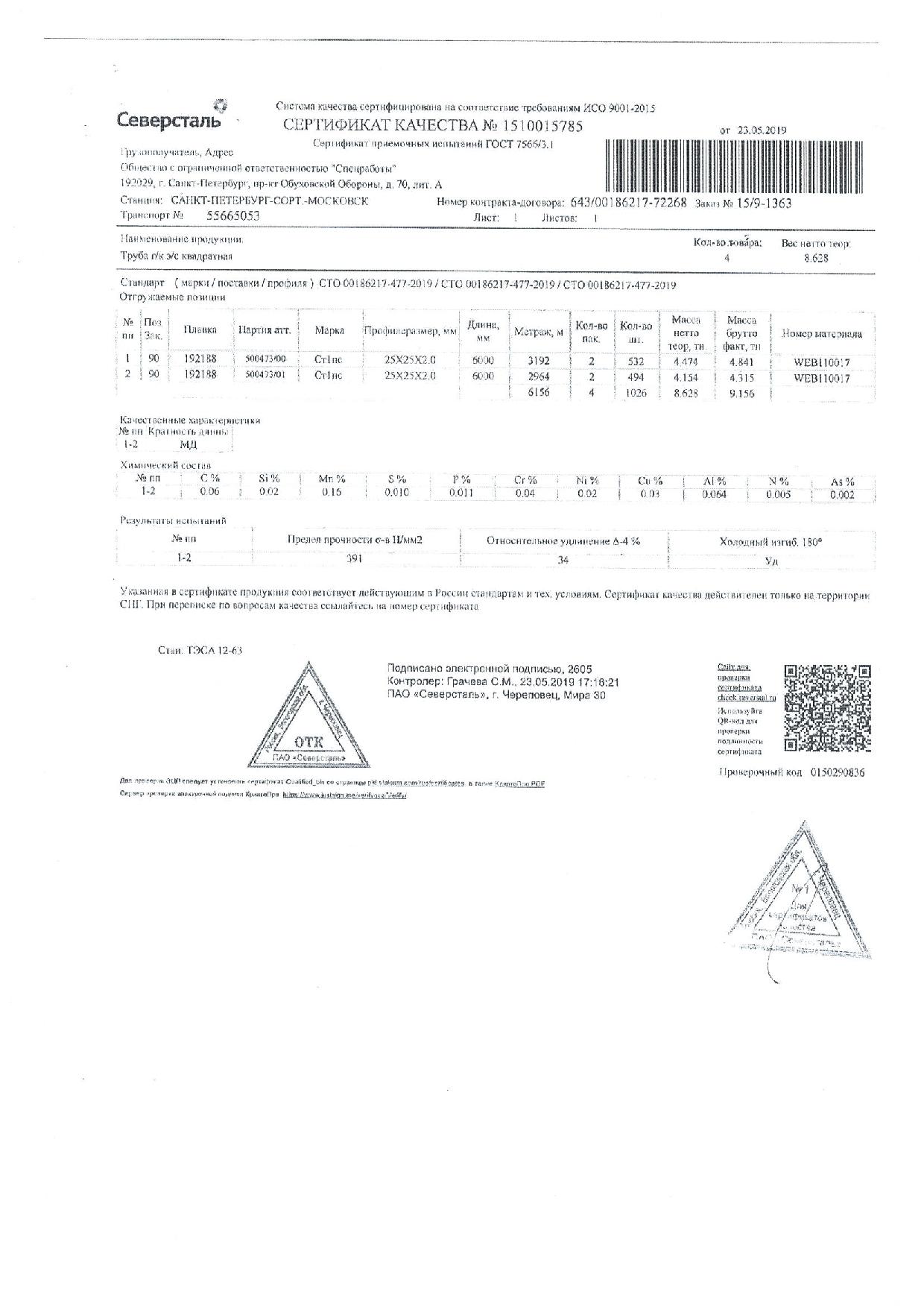 Допустимое отклонение в длине +/- 50мм, предельное отклонение толщины стенки от -25% до +12,5%