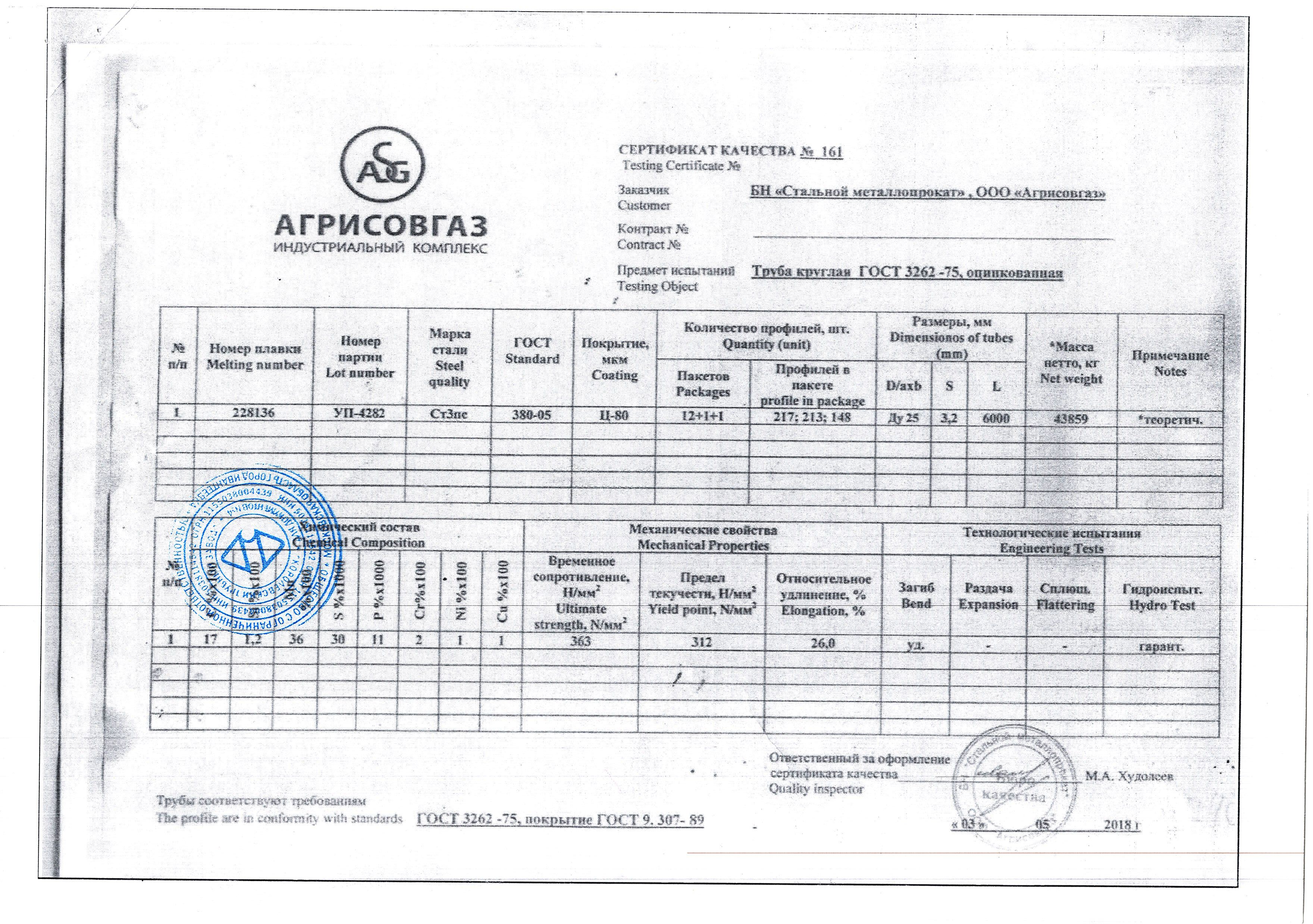 Допустимое отклонение в длине +/- 50мм, предельное отклонение толщины стенки от -25% до +12,5%