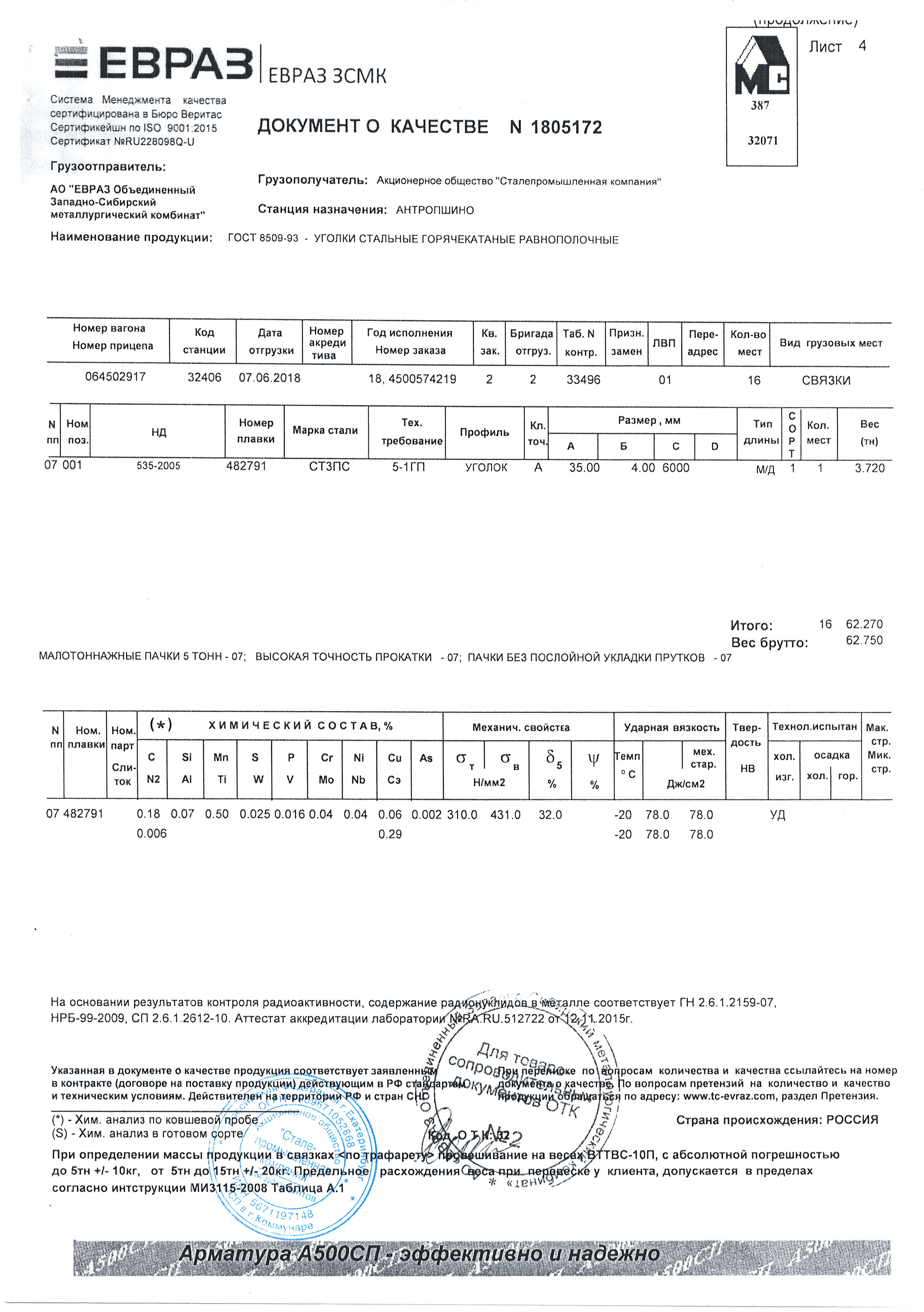 Допустимое отклонение в длине +/- 50мм, предельное отклонение толщины стенки от -25% до +12,5%