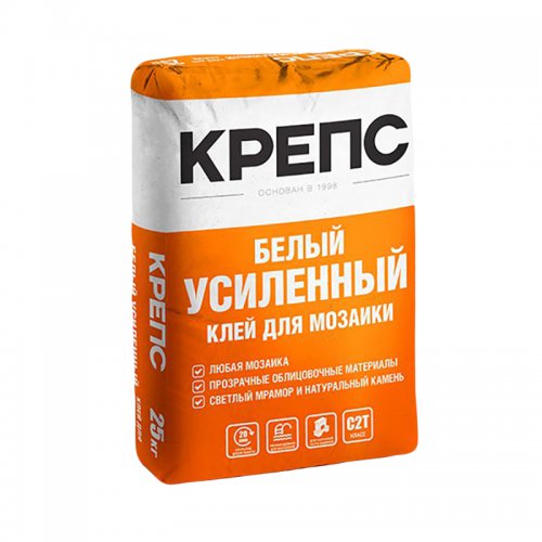 КРЕПС Белый Усиленный (25кг) клей для мраморной, мозаичной и прозрачной плитки