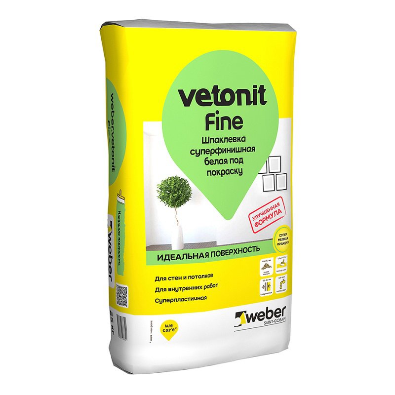 Для суперфинишного выравнивания стен и потолков в сухих помещениях под покраску. Шпаклевка Vetonit Fine не является водостойкой, она непригодна для выравнивания полов или оснований под облицовку плиткой.