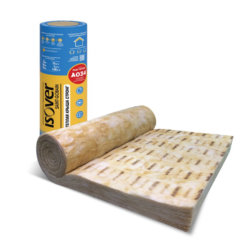 ISOVER Теплая Крыша Стронг – самая теплая и упругая минеральная вата для утепления и звукоизоляции крыши и мансарды даже с самым нестандартным шагом стропил без крепежа: например, 400мм, 570мм, 670мм и т.д. до 800 мм. Утеплитель отличается усиленной влагостойкостью и специальной разметкой на поверхности минваты для нарезки на плиты любого размера.