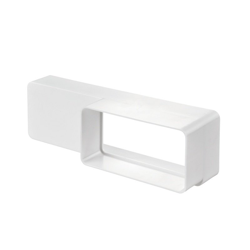 Редуктор прямоугольный для соединения плоских каналов разных сечений. Изготовлен из пластика белого цвета. Присоединительные размеры: 55х110-60х204 мм.
