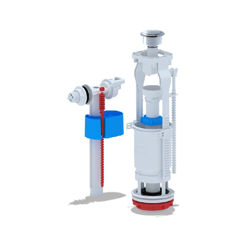 Универсальная арматура для сливного бачка унитаза, однорежимная с боковой подводкой. Наливной клапан мембранного типа обеспечивает контроль за поступлением воды в сливной бачок. Боковая подводка. Штуцер пластиковый G 1/2" с сетчатым фильтром. Регулировка уровня наполнения. Сливной клапан - представляет собой систему спуска воды в унитаз (после нажатия кнопки), перекрывает его после опустошения бачка, и обеспечивает аварийный слив.