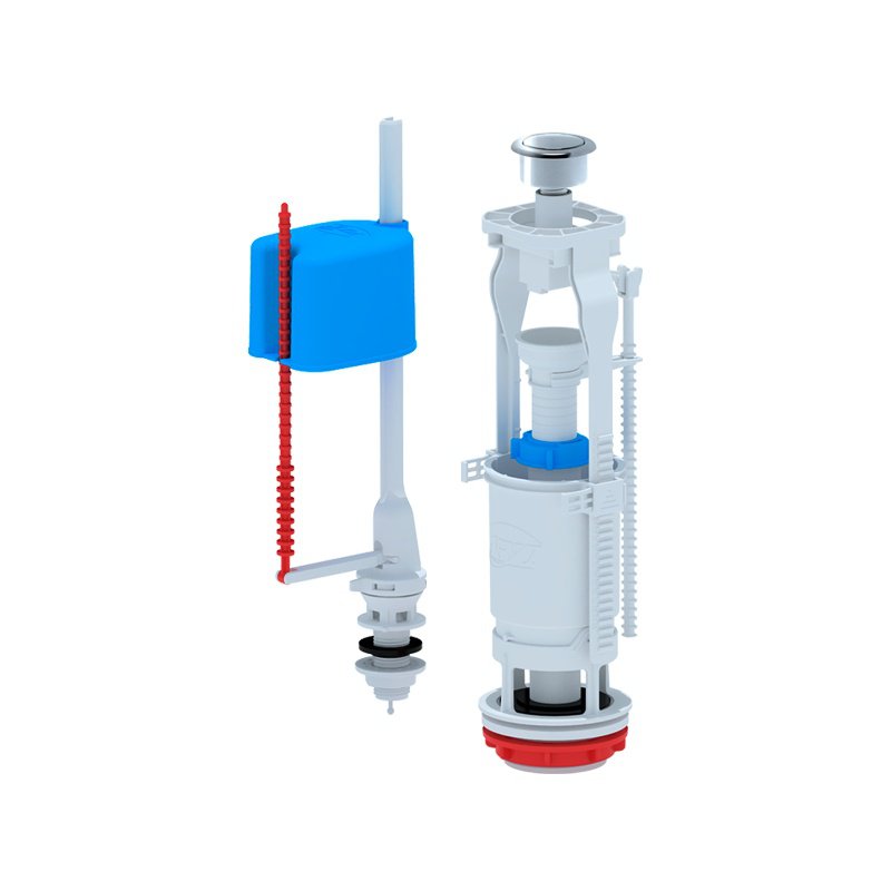 Универсальная арматура для сливного бачка унитаза, однорежимная с нижней подводкой. Наливной клапан мембранного типа обеспечивает контроль за поступлением воды в сливной бачок. Боковая подводка. Штуцер пластиковый G 1/2" с сетчатым фильтром. Регулировка уровня наполнения. Сливной клапан - представляет собой систему спуска воды в унитаз (после нажатия кнопки), перекрывает его после опустошения бачка, и обеспечивает аварийный слив.