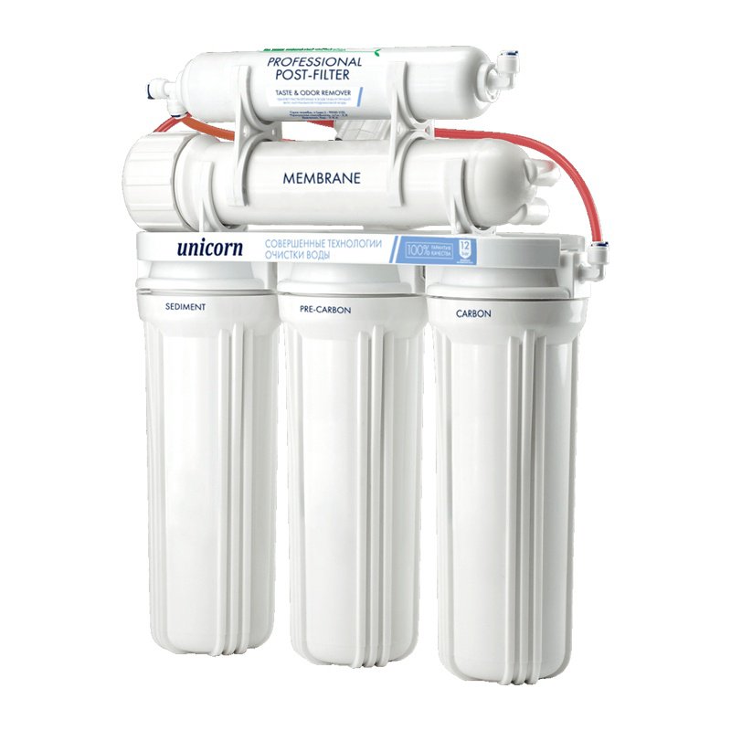 Система очистки для получения воды наивысшего качества. Несколько ступеней очистки, включая обратноосмотическую мембрану, позволяют удалить до 99% всех видов загрязнений, включая бактерии и вирусы. Очищенная вода накапливается в отдельном баке и подается через кран, отдельно устанавливаемый на кухонной мойке. Система фильтрации данного типа имеет соединения типа John Guest, которые ускоряют процесс монтажа и обслуживания.