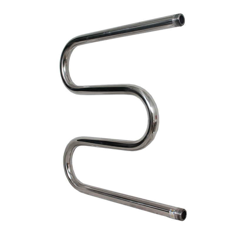 Изготовлены из нержавеющей стали марки AISI-201 с применением дорнового трубогиба, уникальная технология накатки резьбы, ровная завальцовка отводов с торцов, зеркальная полировка механическим способом, тип подключения - боковой