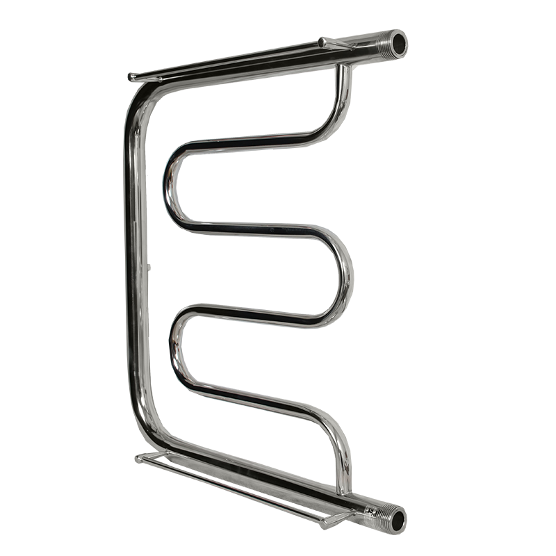 Данные полотенцесушители также относятся к эконом-классу, ввиду своего внешнего вида являются наиболее дорогими из группы. Благодаря совмещению классического дизайна с оригинальной вставкой в виде змейки между отводами позволит вписаться в современную ванную комнату. Являются в меру компактными, но эргономичными и удобными. Данные изделия смотрятся поинтереснее самых простых экономов, но также выполняют свое предназначение: сушка белья и полотенец, поддержание необходимой температуры и влажности (тем самым, препядствуя образованию плесени, сырости и грибка). Наличие полочек и змейки позволяет одновременно просушивать большее кол-во белья (по сравнению с М и П-образными п/с), включая маленького и среднего размера полотенца.