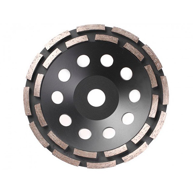 Используется в качестве насадки для УШМ (болгарки) для сухого шлифования и выравнивания бетона, клинкера, натурального камня и других твердых поверхностей. Двухрядное исполнение для грубой очистки поверхности.
