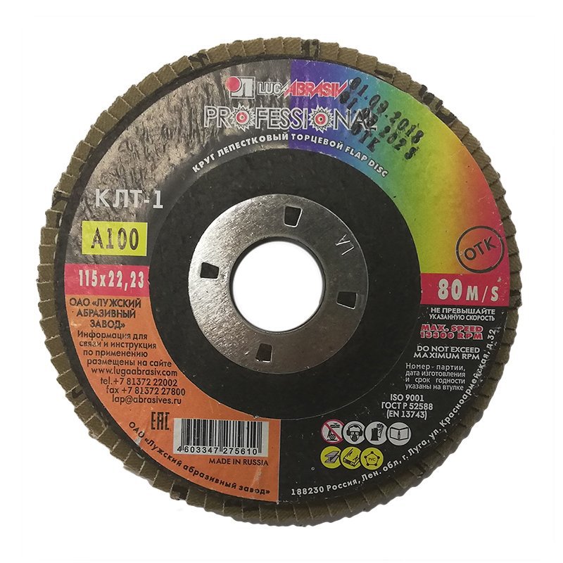 Размеры: наружный диаметр 125 мм, посадочный диаметр 22 мм, зернистость Р80