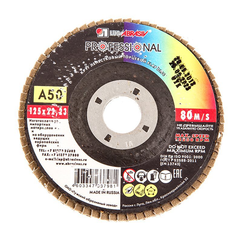Размеры: наружный диаметр 115 мм, посадочный диаметр 22 мм, зернистость Р60