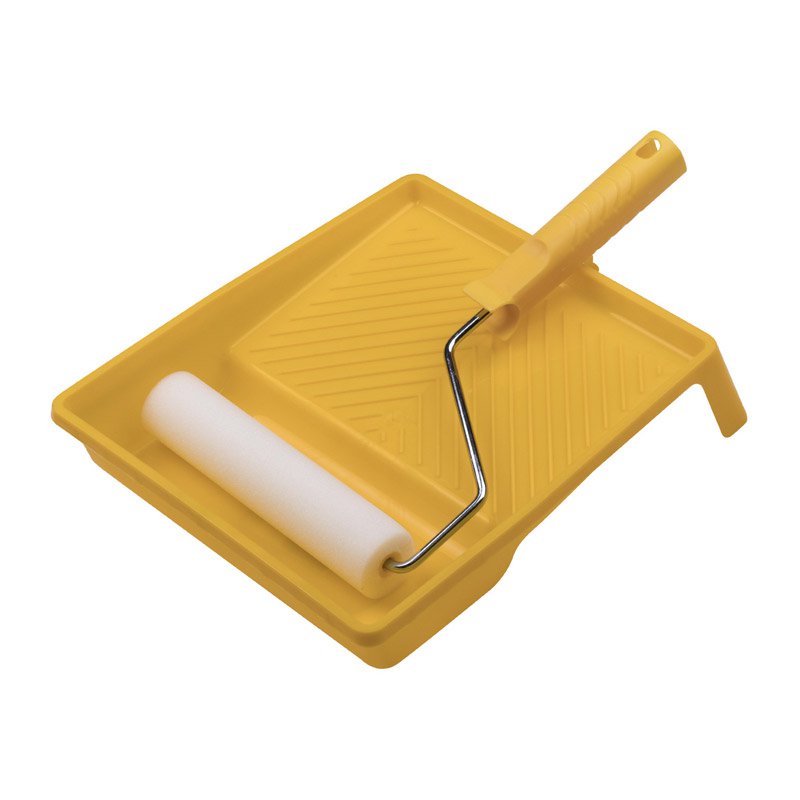 Предназначен для работы с водно-дисперсионными, маслянными красками, эмалями и грунтовками. Комплектуется ванночкой, бюгелем и поролоновым валиком 180 мм. Валик используется только на гладких поверхностях. Не может быть использован с лакокрасочными материалами на основе агрессивных растворителей.