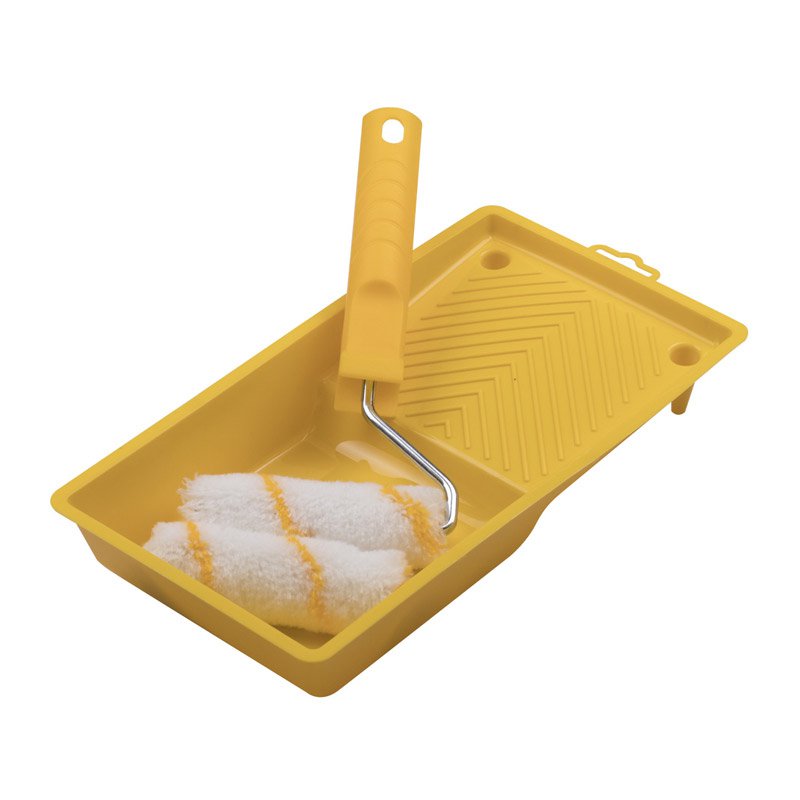Предназначен для работы с водоэмульсионными, акриловыми и латексными красками. Комплектуется ванночкой, бюгелем 190 мм и двумя полиамидными мини-валиками 100 мм. Валики используются на шероховатых и гладких поверхностях.