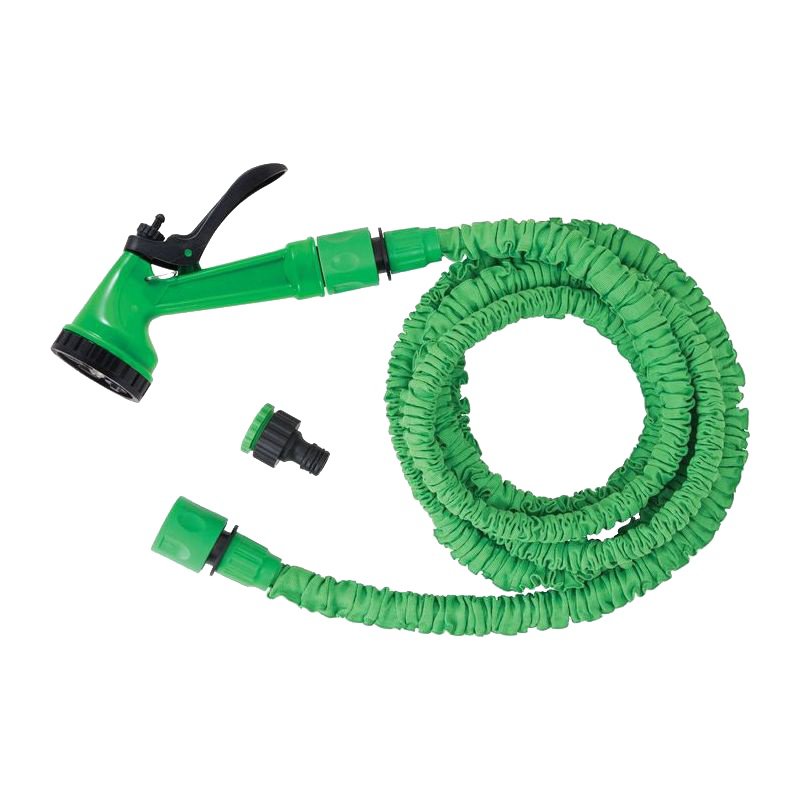 Позволяет организовать систему полива растений, мойки автомобиля, очистки инструментов и дорожек в саду. (пистолет, шланг растяжной, адаптер 3/4" и 3/4" с хомутом, соединитель 3/4")