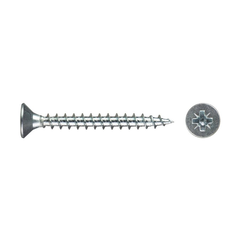 Саморез используется для крепления дерева, ДСП, ДВП и других материалов. Имеет потайную головку, крестообразный шлиц Pozi, острый наконечник, крупную резьбу.