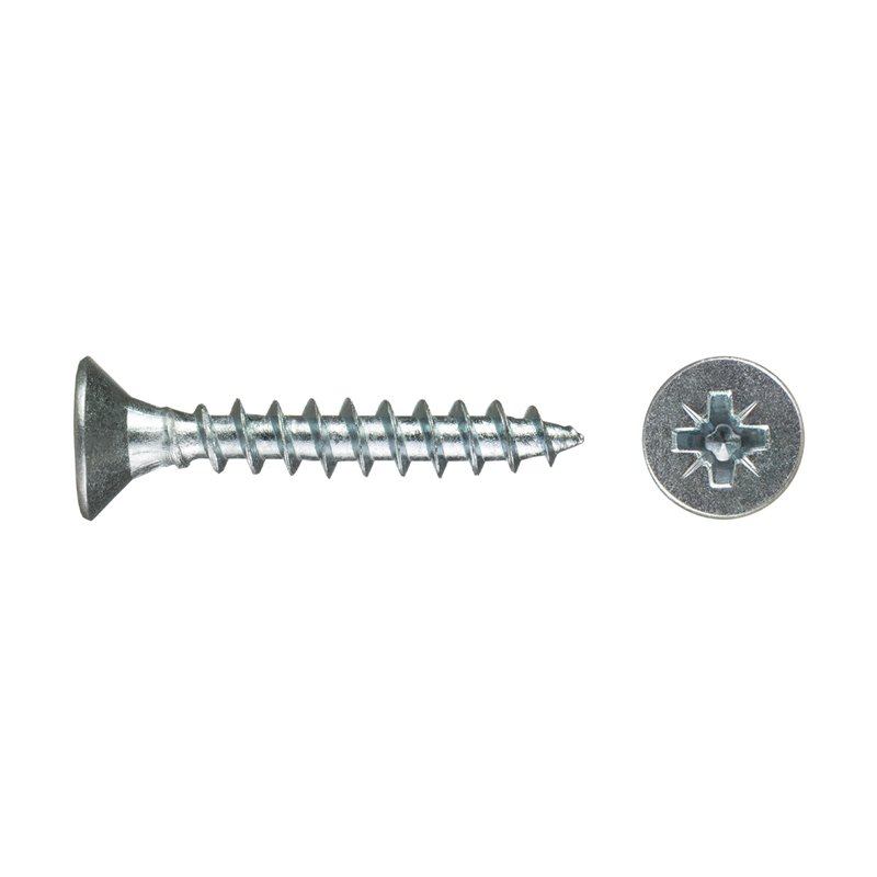 Саморез используется для крепления дерева, ДСП, ДВП и других материалов. Имеет потайную головку, крестообразный шлиц Pozi, острый наконечник, крупную резьбу.